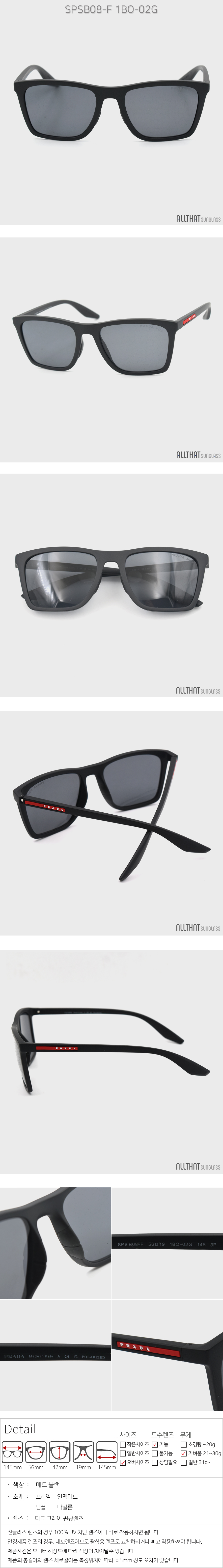 프라다 르네로사 선글라스 SPSB08-F 1BO-02G 편광렌즈