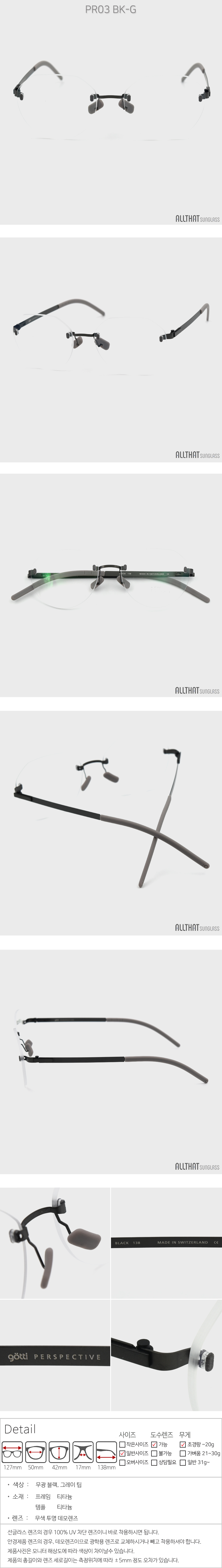 > 고띠 안경 무테 PR03 50 BK-G