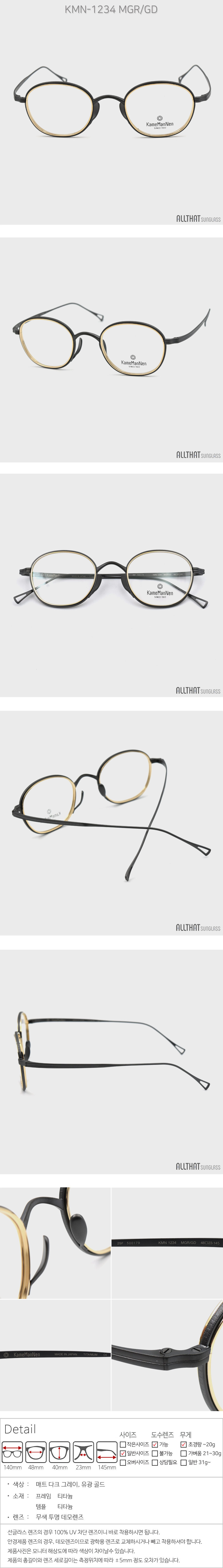 가메만넨 안경 KMN-1234 MGR-GD