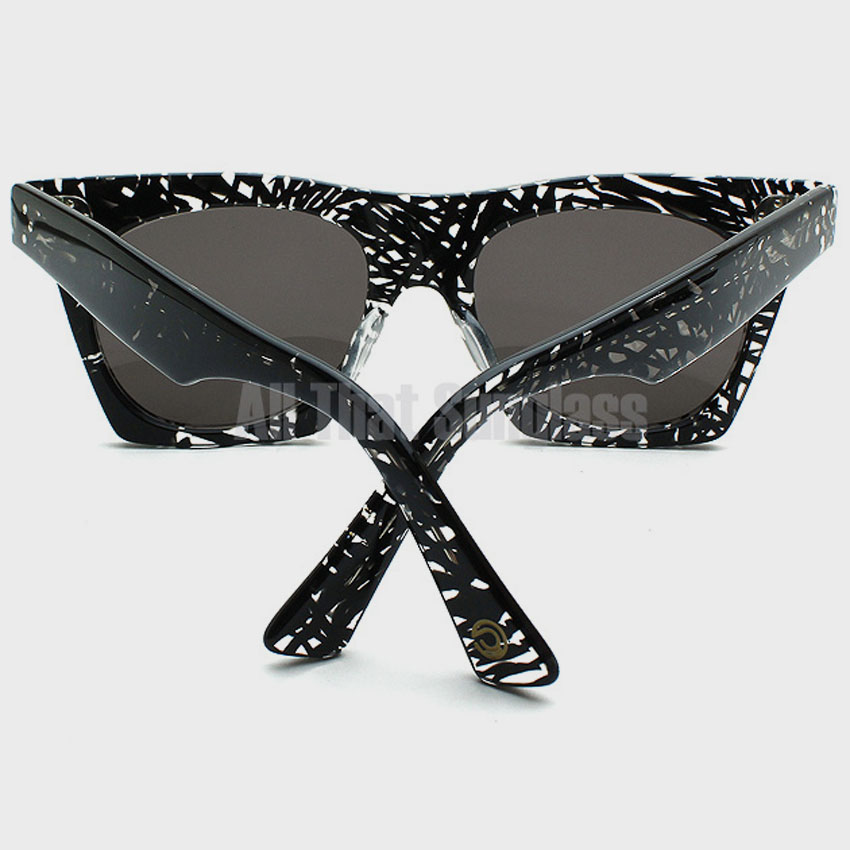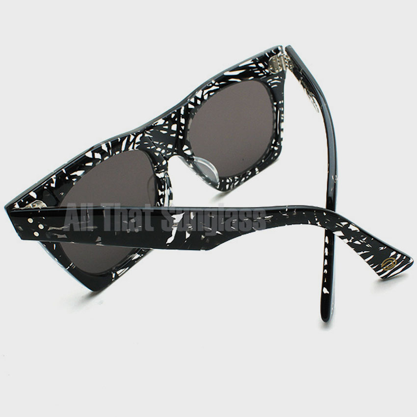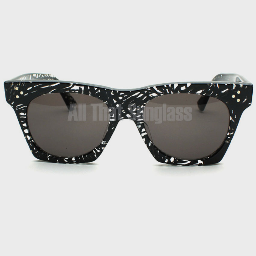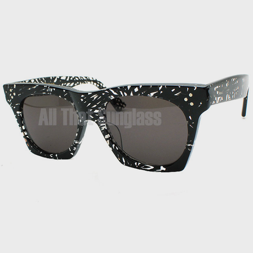 프레임 : 유광 투명 컬러 뿔테 소재. 블랙컬러로 감각적인 패턴이 들어가 있습니다.
