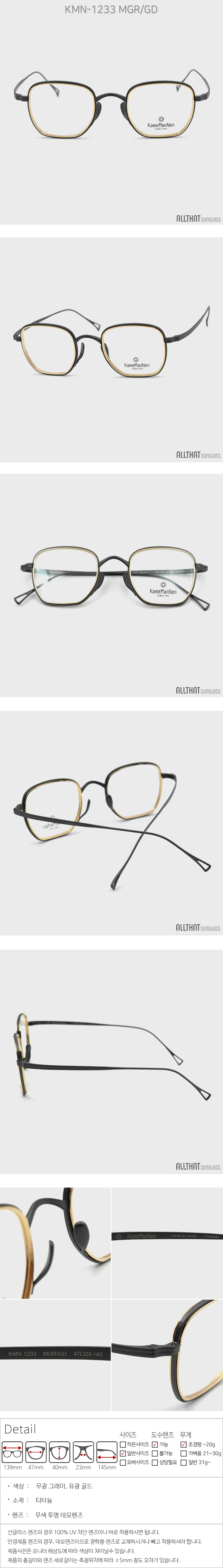 가메만넨 안경 KMN-1233 MGR-GD