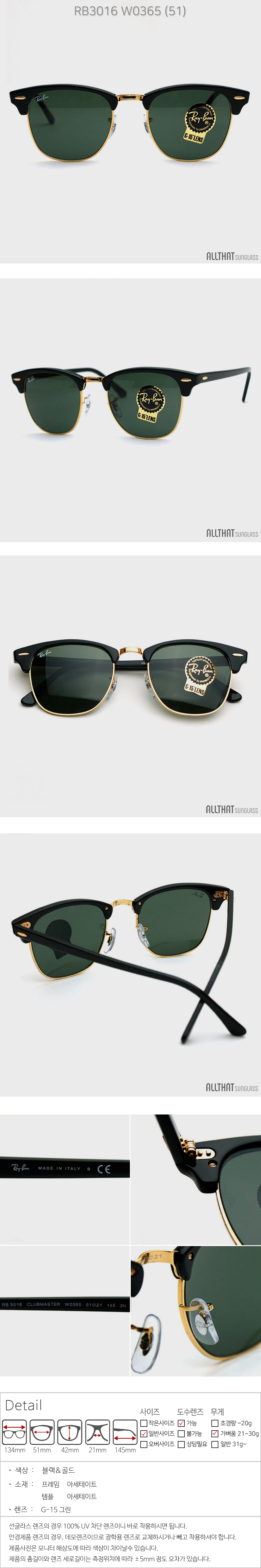 레이벤 선글라스 클럽마스터 RB3016 W0365 (51)